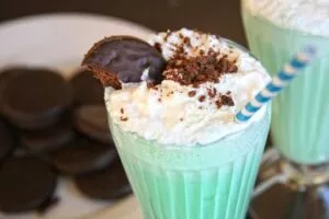 In 4 niet te kleine glazen schenken en meteen serveren. Kruimel er Oreo’s over.